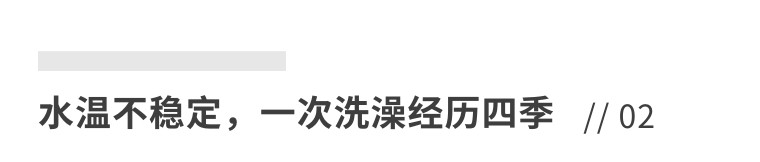 變頻恒溫控制系統,30-55℃精準控溫,告別忽冷忽熱;四季寬頻調溫,根據不同季節和人群,滿足不同的洗浴水溫需求。